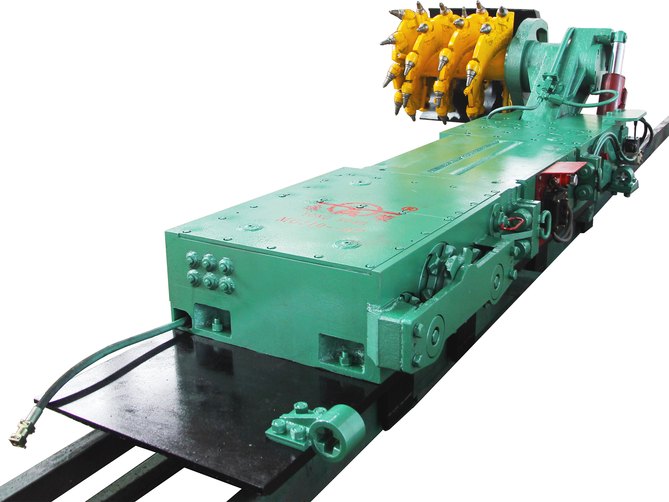 該型采煤機(jī)是綜合國(guó)際、國(guó)內(nèi)同類機(jī)型的特點(diǎn)、優(yōu)點(diǎn)開發(fā)而成的一種新型采煤機(jī)。其結(jié)構(gòu)特征為騎溜式、單搖臂、液壓鏈牽引薄煤層滾筒式采煤機(jī)。