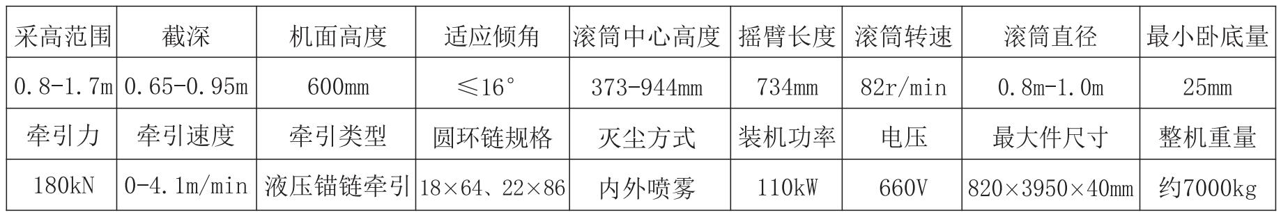 該產(chǎn)品適用于采高0.8-1.7m,煤層傾角16°以下的薄煤層,煤質(zhì)硬度≤3.5,含有少量夾矸的長(zhǎng)壁式工作面