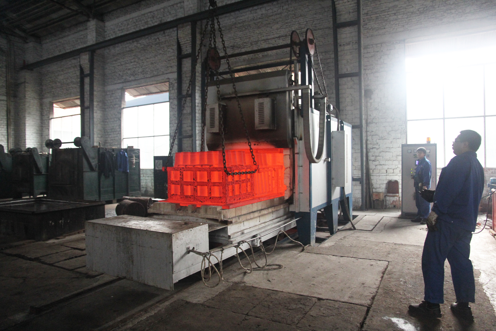 · 臺(tái)車爐 適用于長(zhǎng)2.9米×寬1.2米×高0.9米以下鑄件、鍛件退火、正火,2.9米以下長(zhǎng)軸類、大件類、批量件的淬火、調(diào)質(zhì)處理。