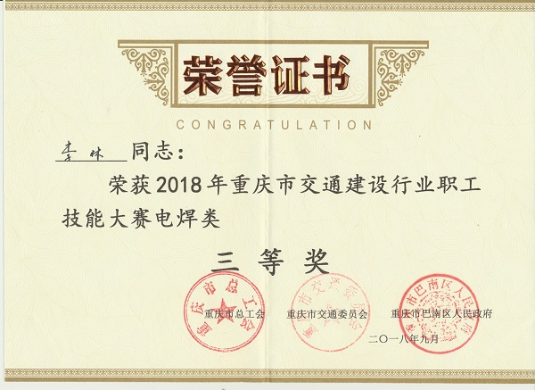 近日,重慶市交通建設(shè)行業(yè)職工技能大賽在巴南區(qū)舉辦,重慶永榮機制公司職工參賽并榮獲焊工項目個人三等獎。
