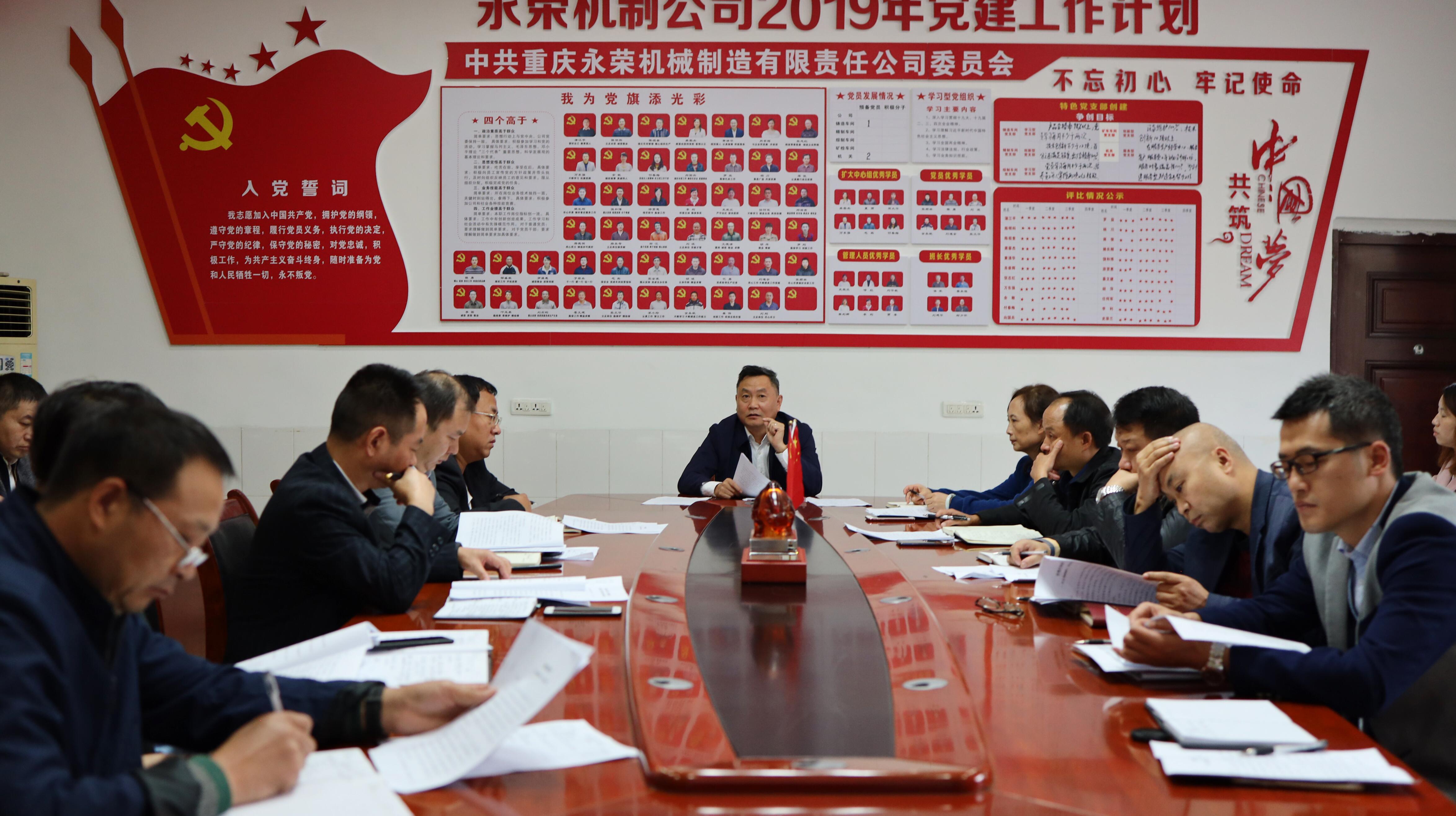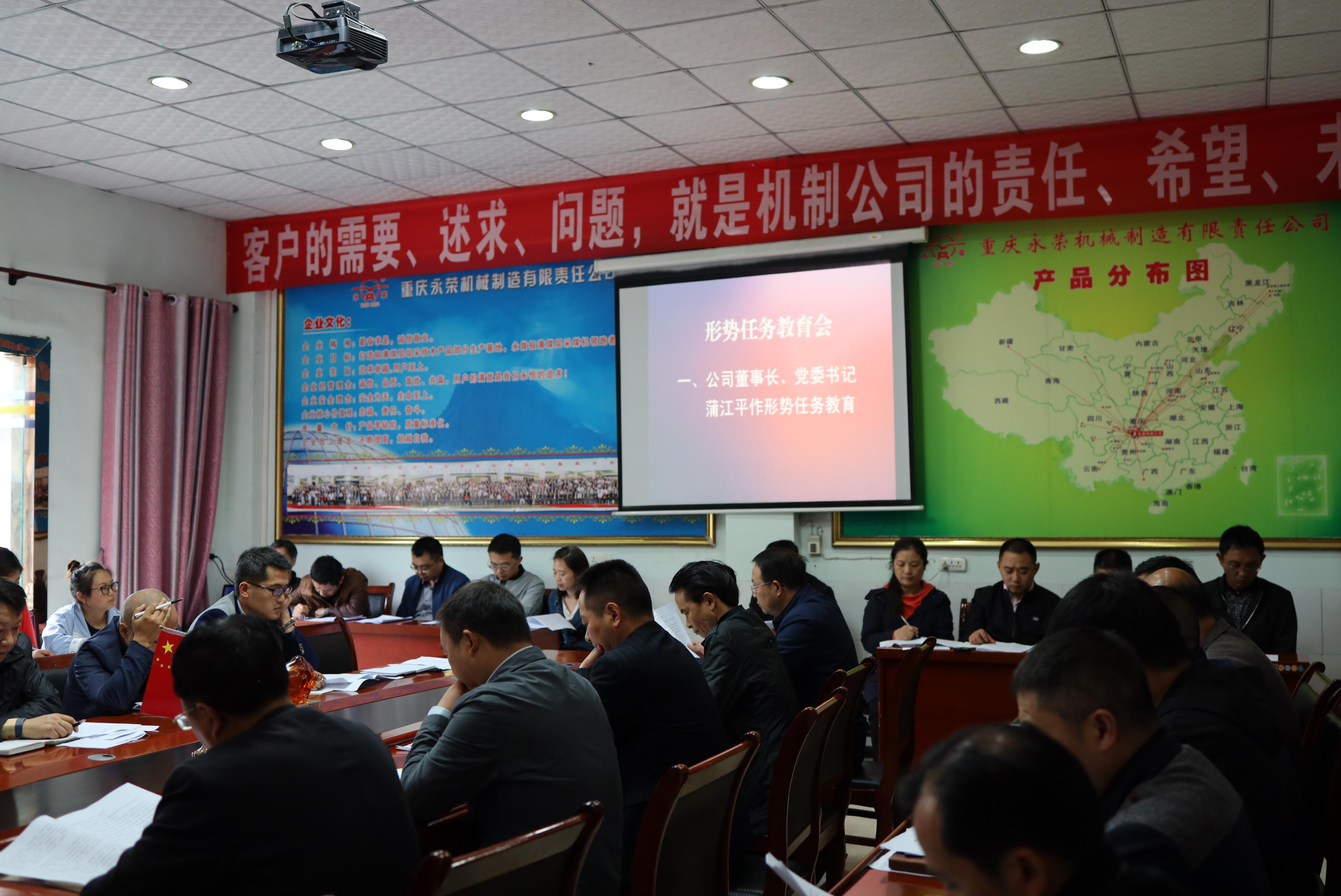 2019年10月21日,機(jī)制公司開展形勢(shì)任務(wù)教育,公司董事長(zhǎng)蒲江平同志作形勢(shì)任務(wù)報(bào)告,監(jiān)事會(huì)主席黃清華同志作重要講話 。